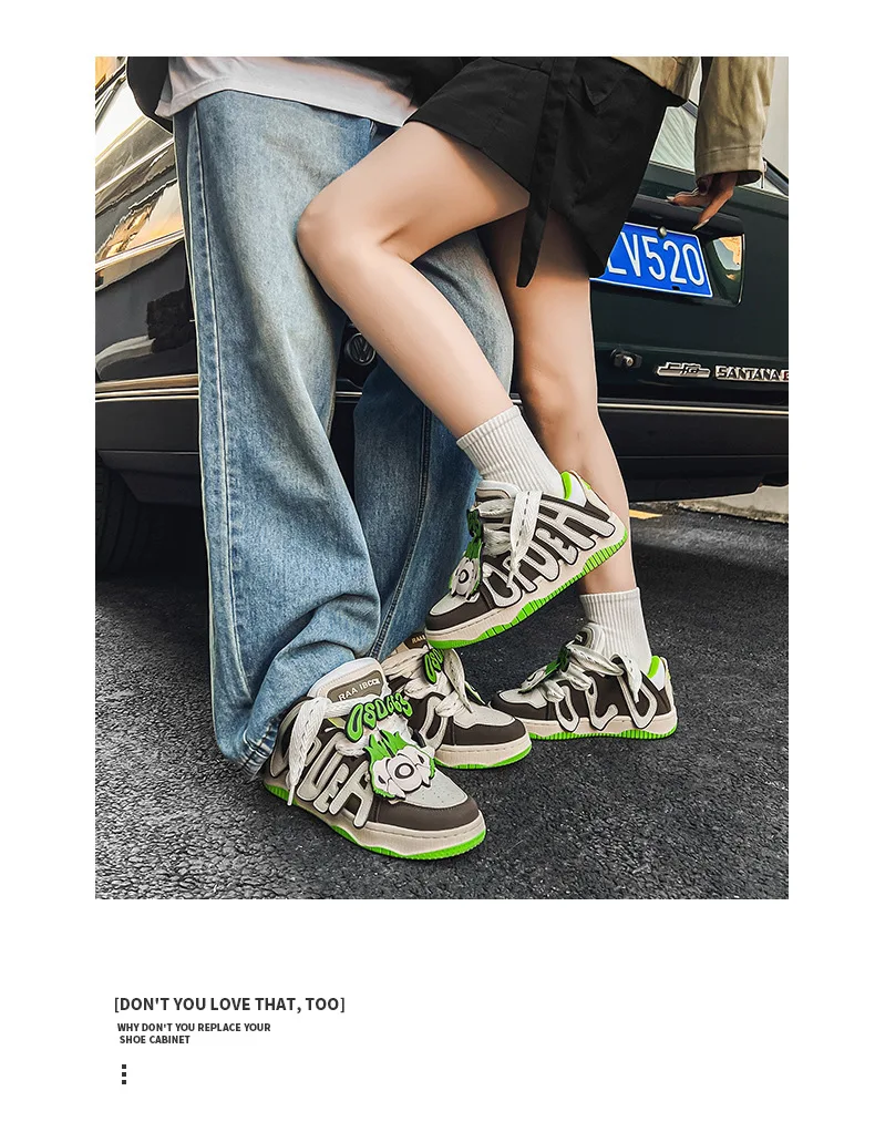 Couples His & Her Sneakers Punk Skateboard Letters Bread Casual Shoe